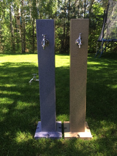 W wersji podstawowej wyposażony może zostać w jeden lub dwa krany czerpalne w wersji premium wyposażony może zostać w czujnik zbliżeniowy powodujący automatyczne otwarcie zaworu i tym samym wypływ wody. Zastosowanie w jednym punkcie poboru wody dwóch kranów czerpalnych umożliwia w jednym momencie umyć np. ręce czy napełnić dowolne naczynie wodą podczas gdy do drugiego kranu czerpalnego może być podłączony wąż ogrodowy np. w celu podlewania trawnika.