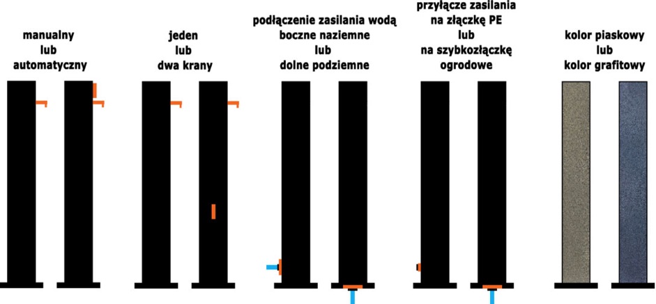 Punkt poboru wody dostępny jest w 16 wariantach w kolorze grafitowym oraz piaskowym.